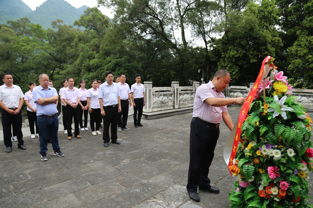 东兰县是全国著名的革命老区,是全国最早开展农民运动的地区之一,是广西农民运动的发祥地,是韦拔群、韦国清的故乡,为让集团党员追寻革命先烈的足迹,铭记共产党人的初心,在建党98周年之际,2019年7月1日至2日集团党支部书记谢家伟带领支部15名党员代表赴东兰县开展“不忘初心、牢记使命”红色教育活动,集团公司董事长兼总裁邓亚保、广西福毅德投资有限公司董事长黄毅出席本次活动,城北街道党工委组织干事卢玉妮受邀参加活动。