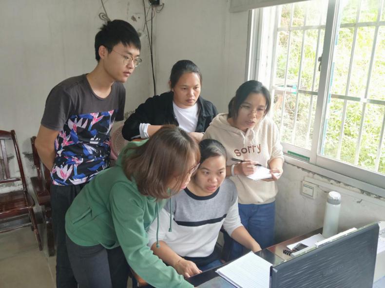 (图1:来宾站管理人员现场观摩柳州军泰搅拌站的ERP管理系统)