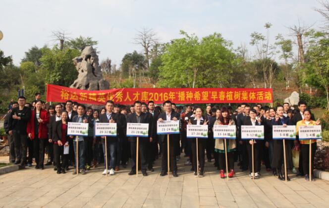 2016年4月26日上午,由集团培训中心组织的裕达新精英优秀人才库2016年“播种希望”早春植树动员活动圆满结束。参加本次活动人员为裕达新精英优秀人才成员均来自集团各中心、各项目、各子(分)公司中层以上管理人员及在职的各体系大学本科生的员工,共计100人。