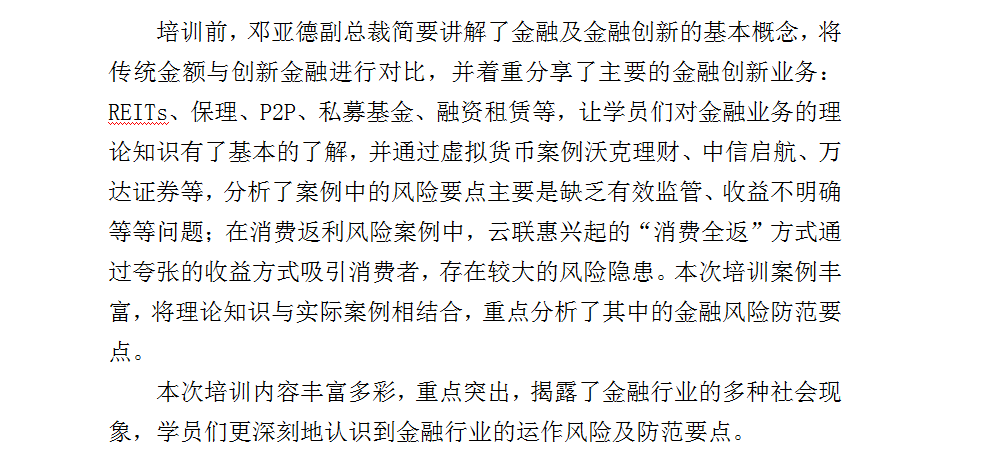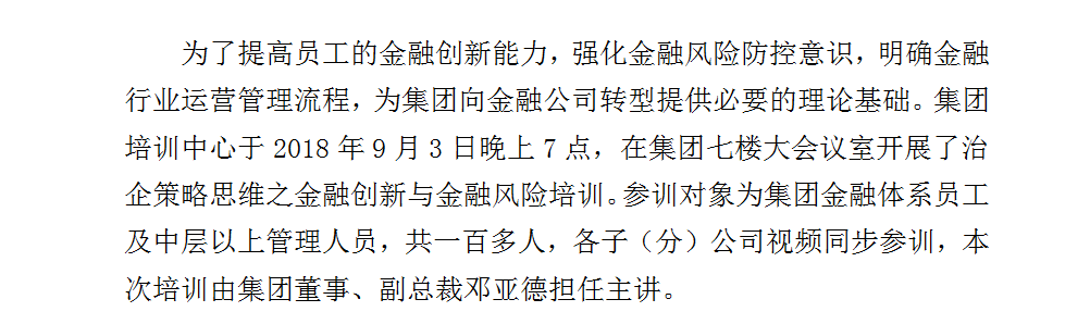 集团培训中心成功举办治企策略思维之金融创新与金融风险培训