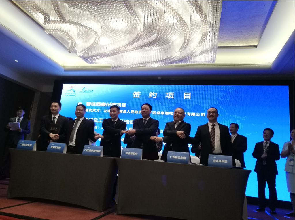 启动仪式上一同签约的项目还有广西盛享碧桂园地产有限公司开发建设的碧桂园廉州湾项目以及广西凤翔集团股份有限公司开发建设的“优质特色猪育种基地”建设项目。