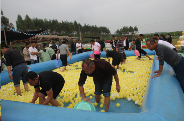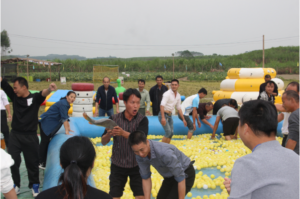 压轴的是《徒手抓鱼》游戏,真切的体现了“民间有高手”。每场40条鱼,20人下鱼池抓鱼。有些伙伴徒手十几分钟内抓获十多条鱼。有些伙伴则全身湿透也没抓着一条鱼。但是大家无比开心,很多伙伴都主动把战利品分享给没抓到鱼的同事,体现了同事间的友爱。