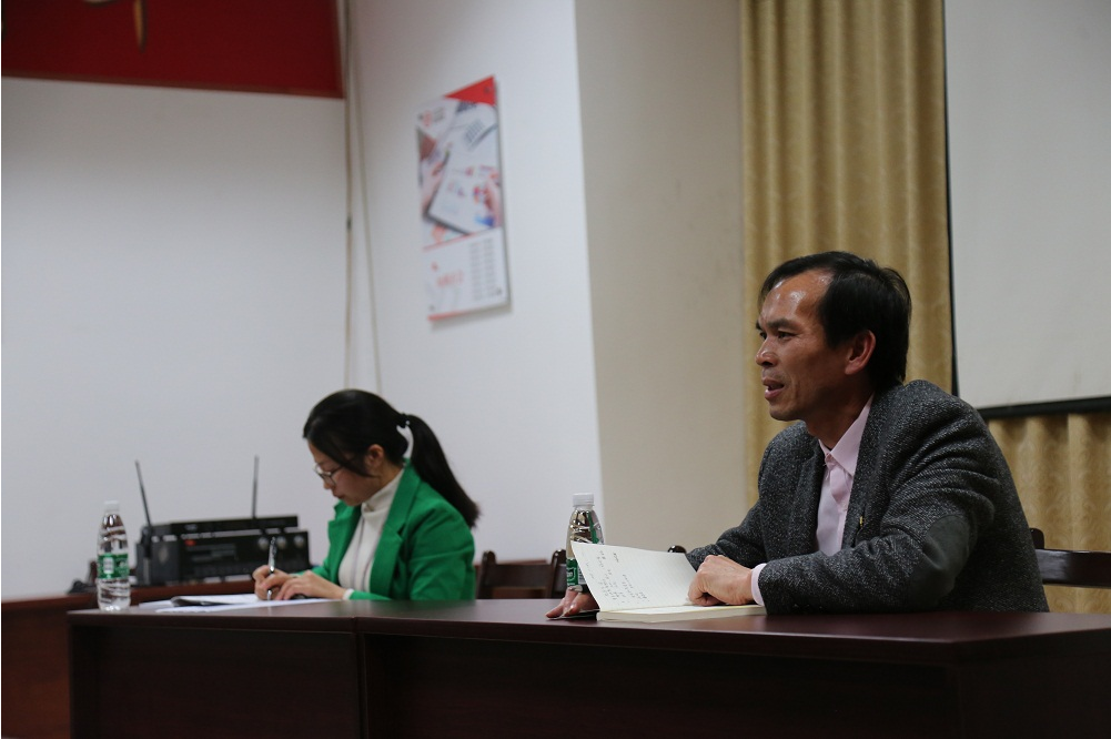 发展对象黄雄光向大会汇报对党的认识、入党动机等
