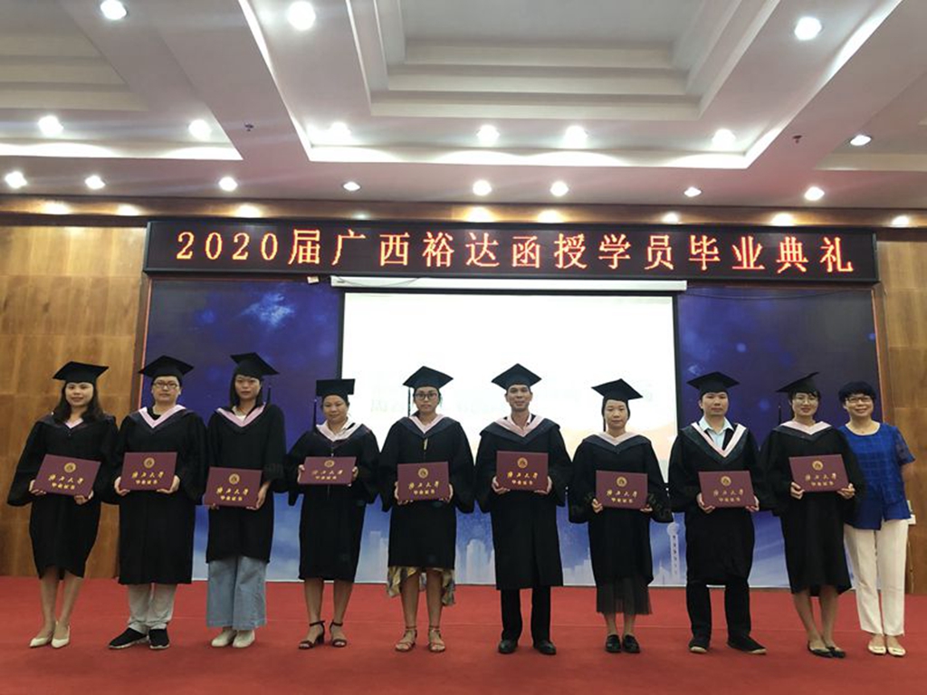 7月31日下午15:00,裕达函授班2020届函授学员毕业典礼在来宾裕达集团7楼大会议室举行。裕达集团行政人力总监陈妍妮、裕达集团人力资源部经理曾雪菊、广西人才市场学习中心部长助理黄淑文、教学主管姚再任老师、毛璐璐老师以及30余名毕业学员代表共同出席了此次毕业典礼仪式。