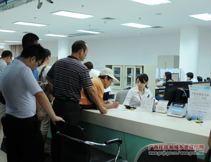 在南宁市住房公积金区直分中心现场,许多职工正排队提取公积金