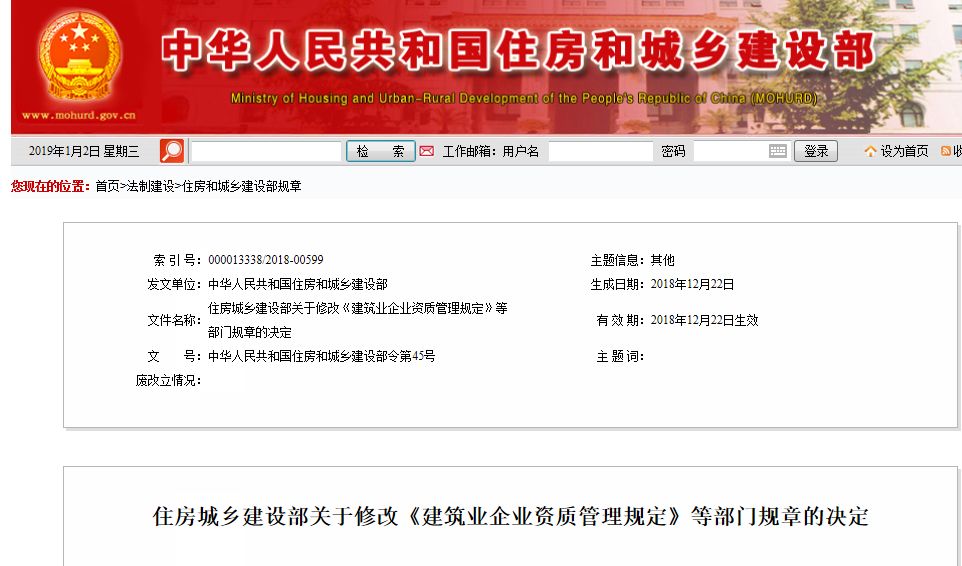 近日,住建部发布修改《建筑业企业资质管理规定》等部门规章的决定,对《建筑业企业资质管理规定》《建设工程勘察设计资质管理规定》《工程监理企业资质管理规定》《房地产开发企业资质管理规定》进行修改,共计修改4条,删去2条。