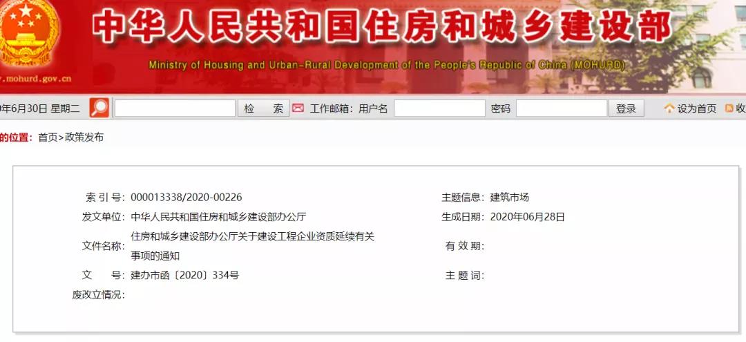 一、我部核发的工程勘察、工程设计、建筑业企业、工程监理企业资质,资质证书有效期于2020年7月1日至2021年12月30日届满的,统一延期至2021年12月31日。