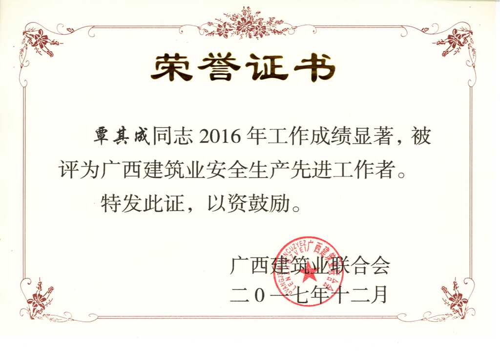 2017年广西建筑业安全生产先进工作者