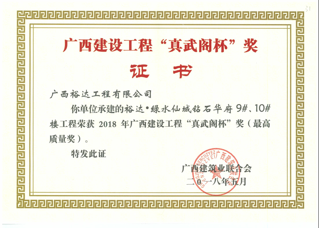 2018年广西建设工程“真武阁杯”奖(最高质量奖)